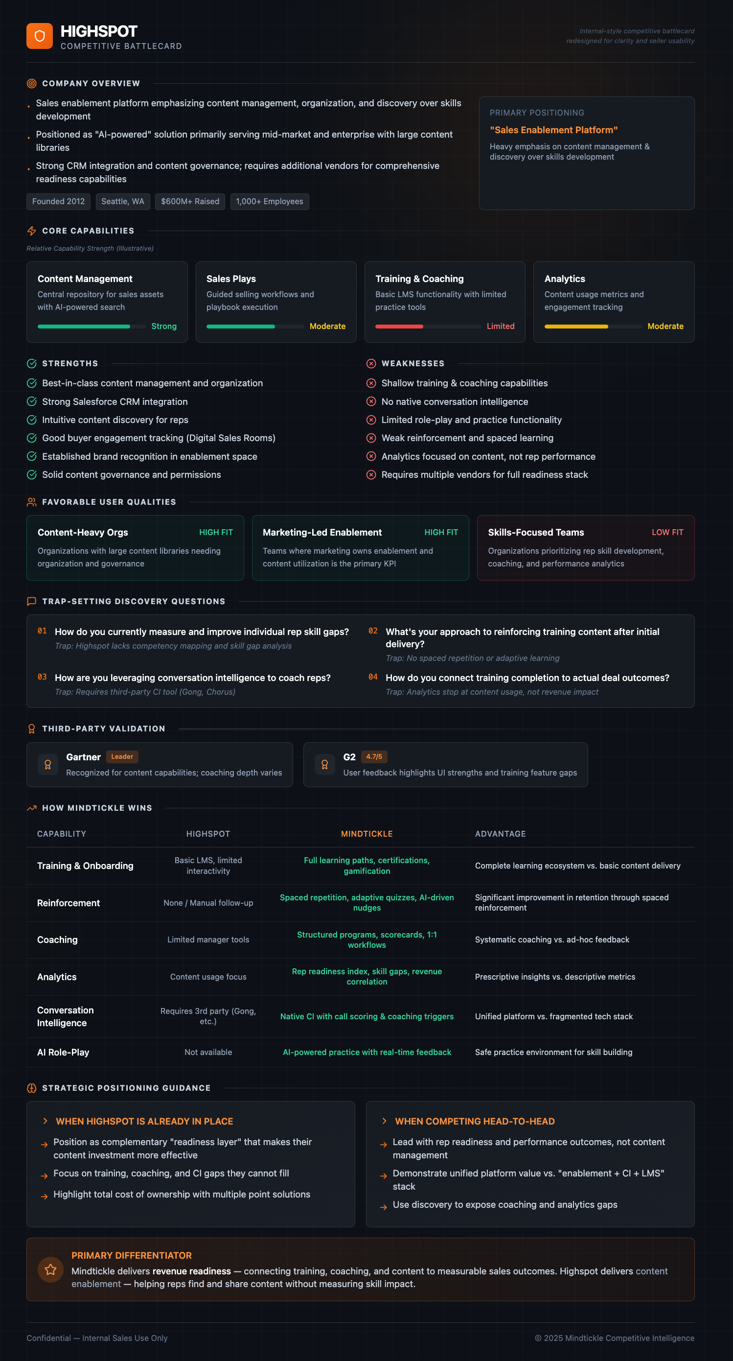 Help sellers position Mindtickle’s strengths without attacking competitors